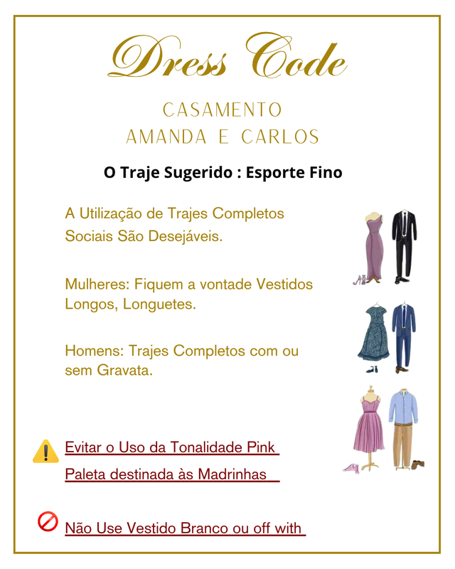 A Utilização de Trajes Completos Sociais São Desejáveis. Mulheres: Fiquem a vontade Vestidos Longos, Longuetes. Homens: Trajes...